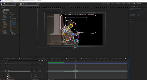 Finally, for the foreground shot where Dan its on the railing, I used Mocha Pro to rotoscope around the edge of his body and guitar so that the layer behind him blends into the scene.